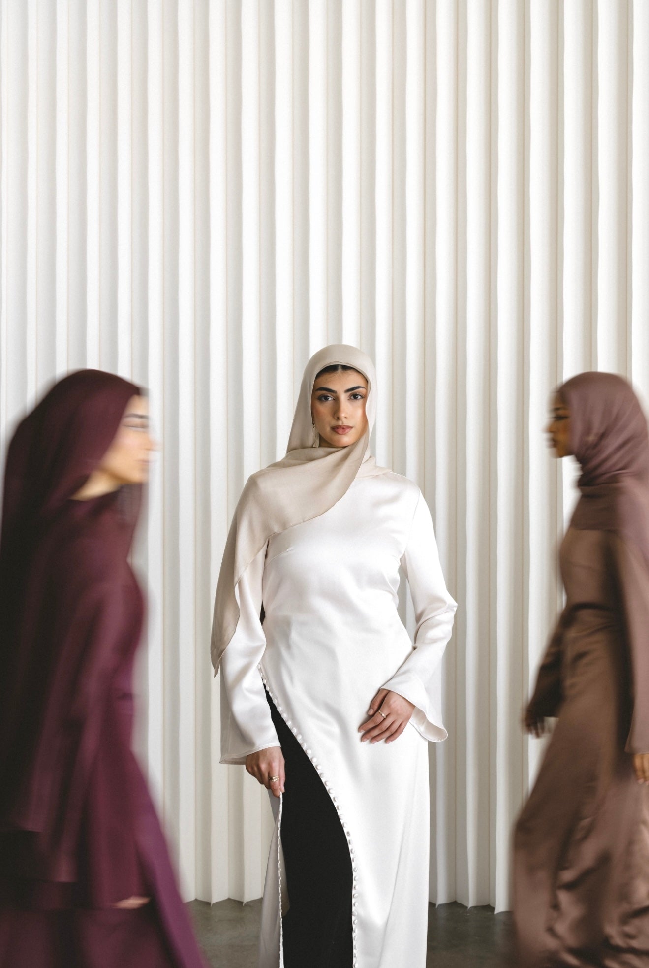 A statement asymmetrical top that blends vintage detail with modern structure. The angled seam lines are accented with satin vintage-style buttons for a refined focal point, while the fabric’s soft satin sheen adds a polished finish. Designed with elegant bell sleeves and adjustable back ties, it offers flexible waist shaping and a flattering fit. A versatile piece that elevates both day and evening looks.