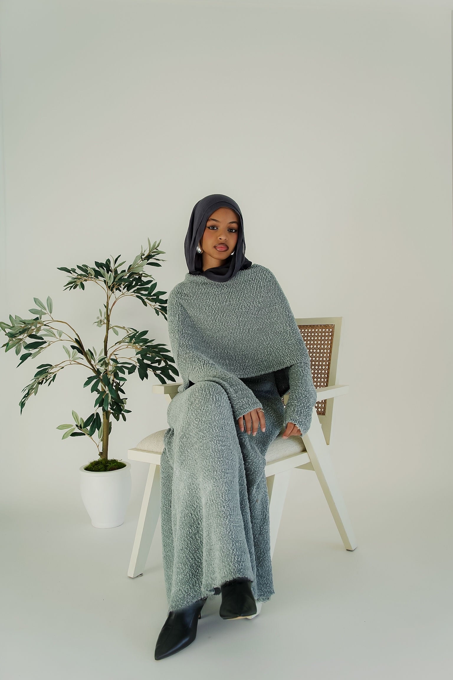 Introducing the NALA Knit dress. This maxi dress boasts a soft, buttery feel and a modest take on the trendy off-the-shoulder design. Timeless and minimal, this classy dress is perfect for staying cozy and stylish all season long.